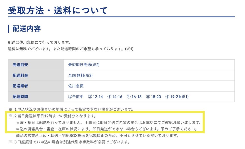 例えば月曜日の朝に申し込めば、その日のうちに発送され、最短で火曜日には手元に届く可能性があります。