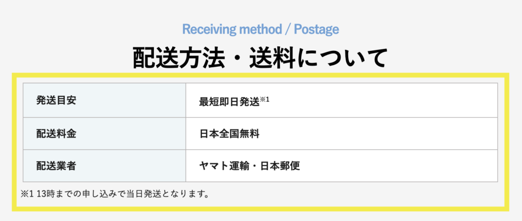 13時前に申込みと決済まで終わらせ即日発送を狙おう
