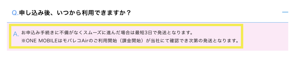モバレコAirは申し込み完了後、最短3日で発送