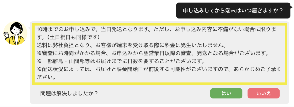 - 土日祝日も同様で10時までの申し込みなら最短当日に発送