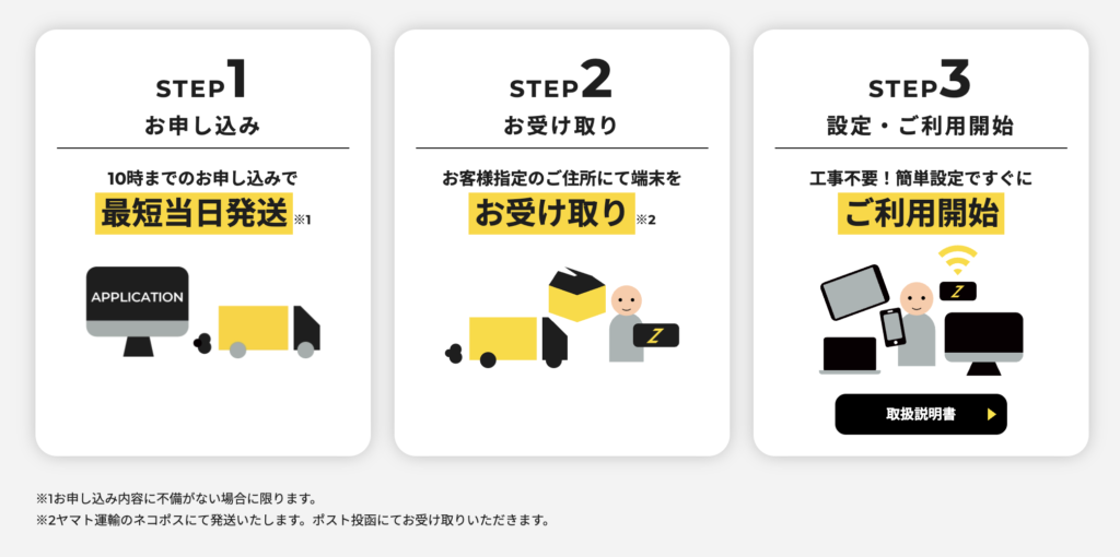 初めてモバイルWiFiを使う方でも迷わずスタートできるのがゼウスWiFiの大きな魅力です。