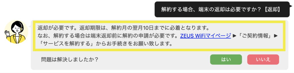 ゼウスWiFi解約・キャンセル時の端末返却方法と返送先